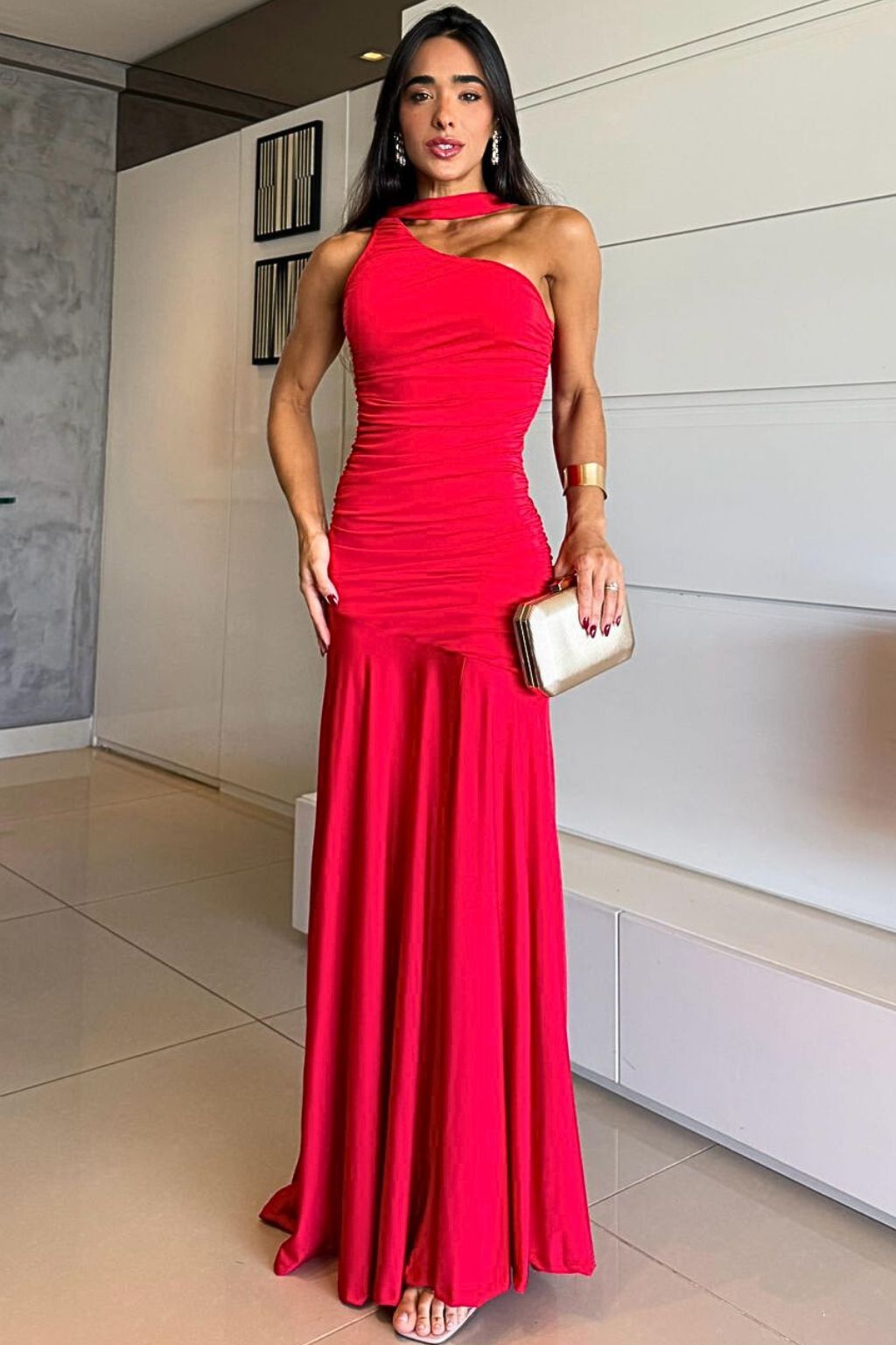 Vestido Longo Impacto com Decote Assimétrico – Glamour e Sofisticação