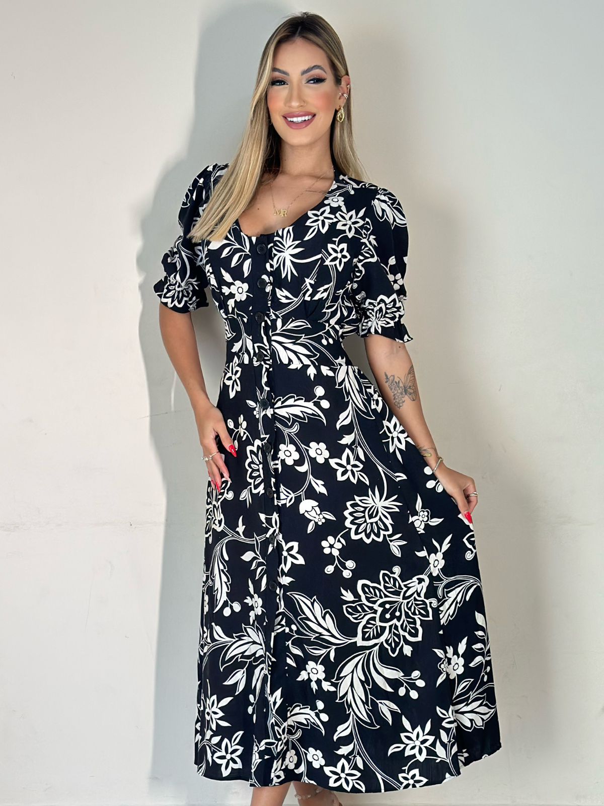 Deslumbre-se com o Vestido Midi Florido, a peça perfeita para a temporada primavera-verão!